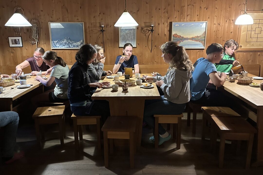 Um 06.30 Uhr war Tagwache gefolgt von einem herzhaften Frühstück. Danach ging es zurück zum Zervrailasee. Viermal Zug wechseln, viele müde Gesichter – aber alle happy.