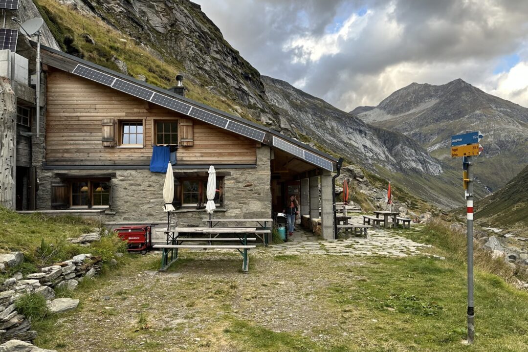 Highlight des Tages: das Abendessen von 19 bis 21 Uhr! Suppe, Salat, Pasta Bolognese, Dessert – und sogar ein „kulinarischer Gruss vom Hüttenwirt“. Wir fühlten uns wie im Fünfsternehotel (nur mit Matratzenlager).