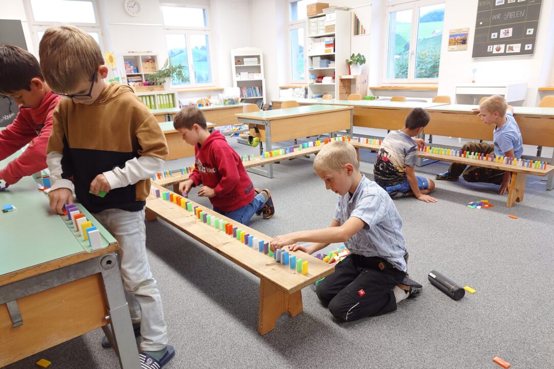 Im gemeinsamen Spiel wird zusammen gelacht, geredet, neues ausprobiert, gelernt, beobachtet etc. Es schafft Brücken zwischen all den unterschiedlichen Kindern aus vier Schulhäusern. Jedes Kind spielt gerne und das verbindet.