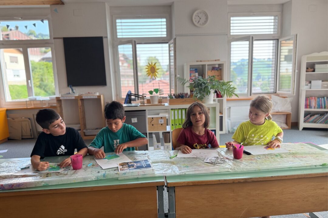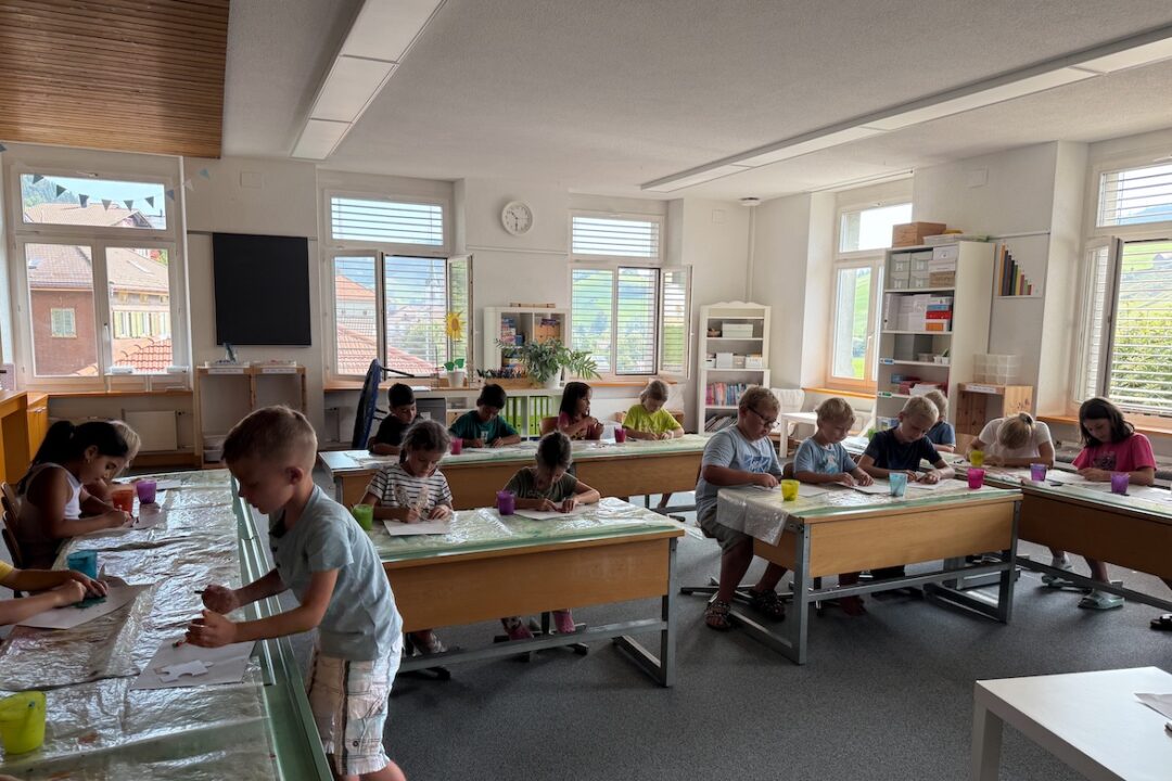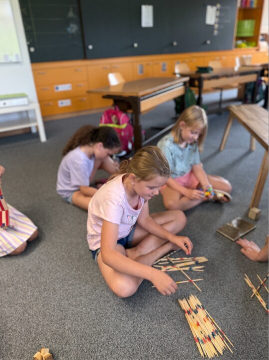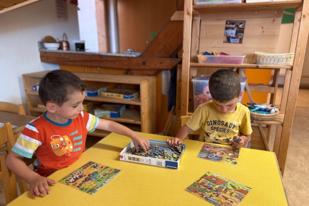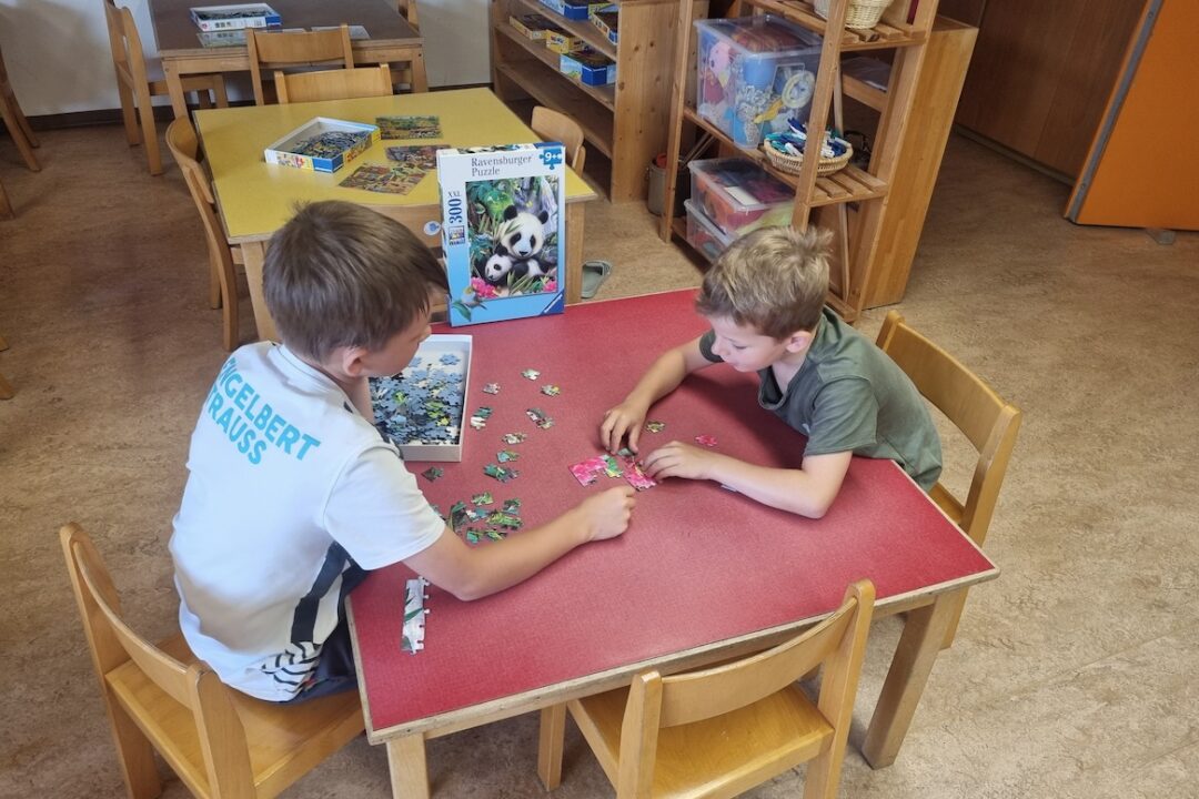 Dann versprangen alle ins Schulhaus Mettlen. Dort warteten verschiedene Angebote auf sie: Knobelspiele, Puzzle, Geschichte hören.