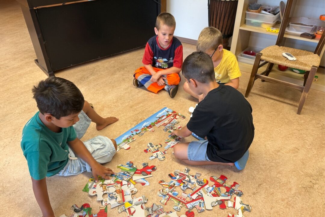 Ende der Woche sahen die Puzzleteile anders aus. Wie denn? Dies können Sie hier lesen: Am Freitag genossen die Kinder zuerst ein feines Weggli und sangen zusammen ein Lied.