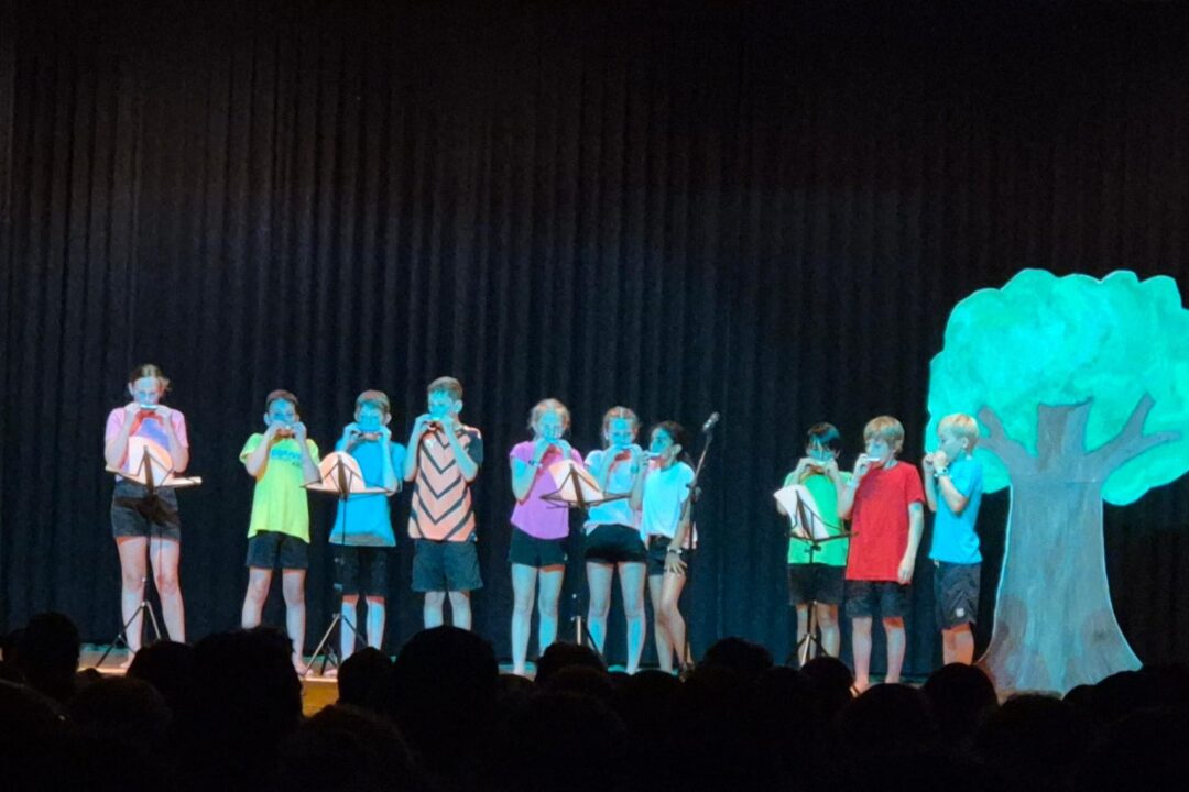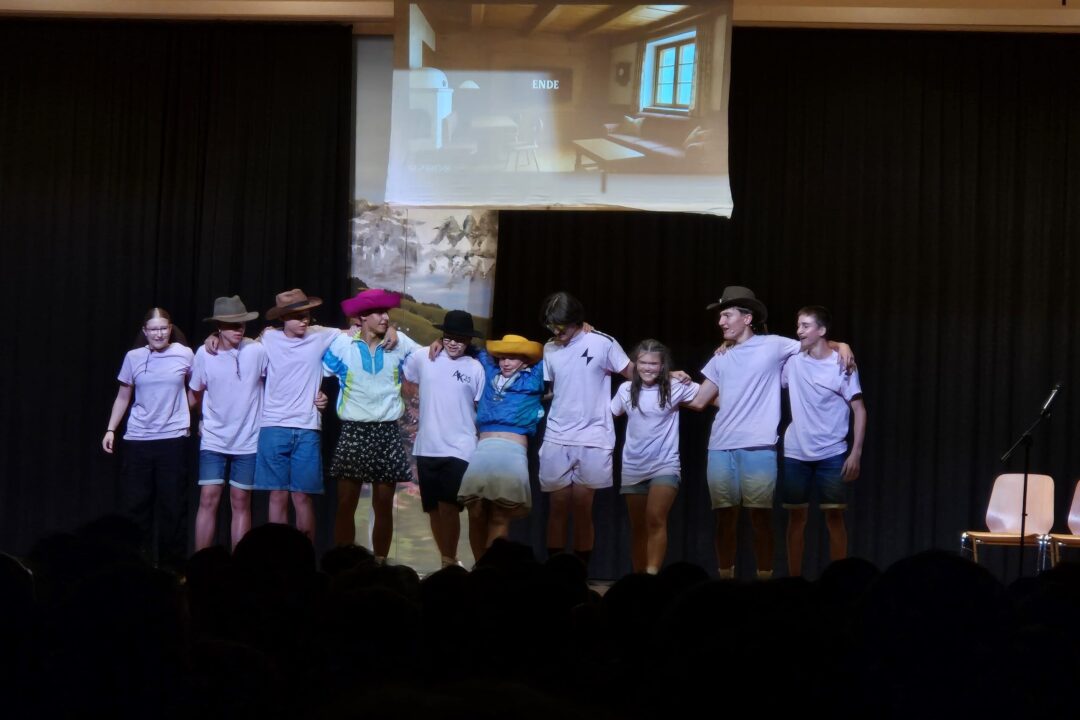 Abgerundet wurde der Anlass durch das Abendprogramm. Dieser bot eine musikalische Darbietung der 4. Klasse von Isabelle Wagner mit Theater, Gesang und Tanz. Darauf folgte das wild und energetisch Theater der 3. Oberstufe unter der Regie von Benjamin Heutschi, welches das ganze Publikum zum Stehen brachte.